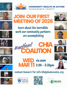 Join us for our CHIA Coalition Meeting to amplify our collective impact and uplift the work of our Steering Committee, Subcommittees, Grantees, and Partners, committed to the vision of a healthier, more equitable Sacramento County.