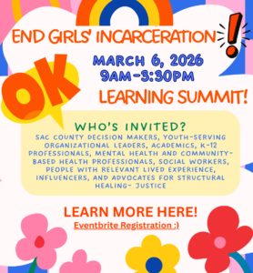 stice Partners and Champions for Children and Youth invite you to the formal launch of Sacramento’s Community Action Network, strengthening the statewide initiative to End Girls’ Incarceration, led by the Office of Youth and Community Restoration (OYCR).