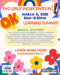 Community Justice Partners and Champions for Children and Youth invite you to the formal launch of Sacramento’s Community Action Network, strengthening the statewide initiative to End Girls’ Incarceration, led by the Office of Youth and Community Restoration (OYCR).